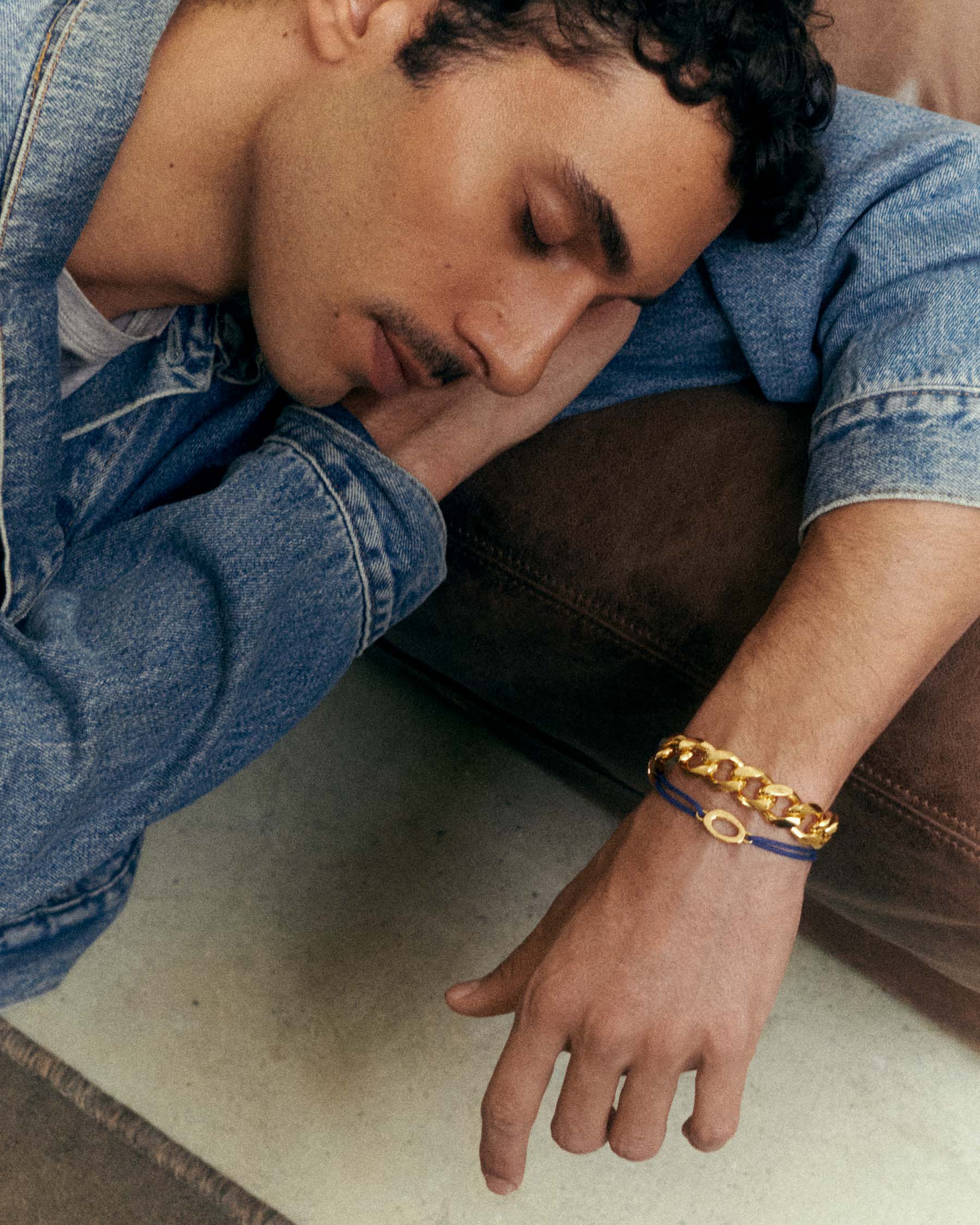 Bracelet à grosse chaîne cubaine, à la silhouette affirmée et intemporelle.