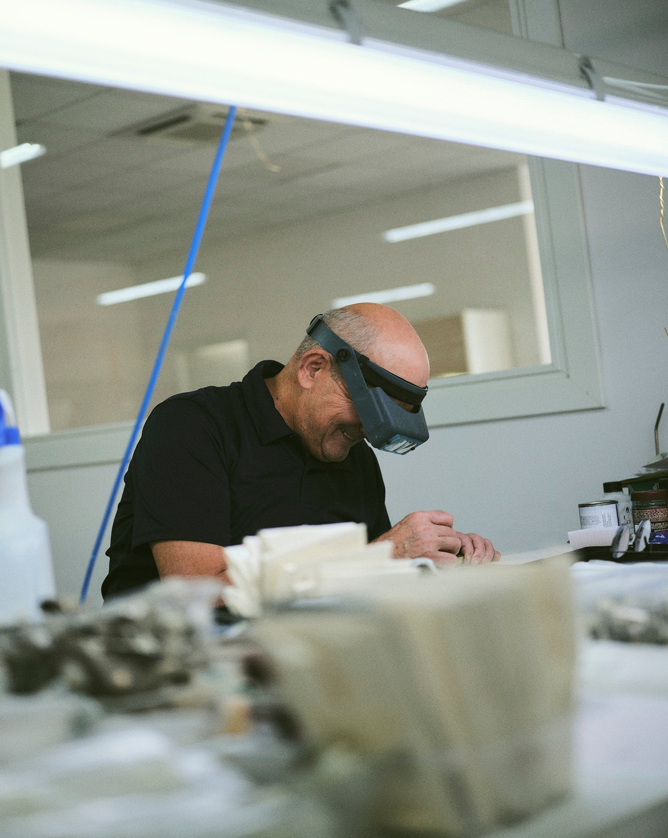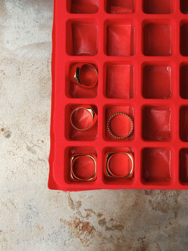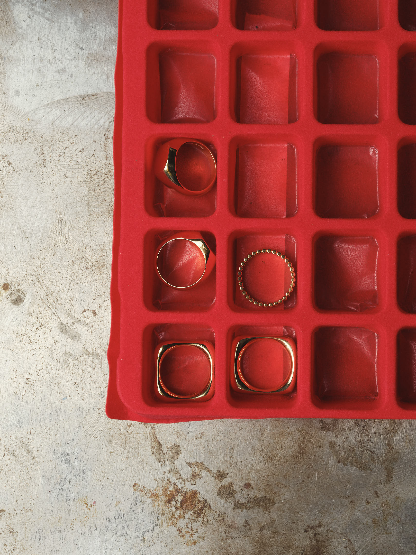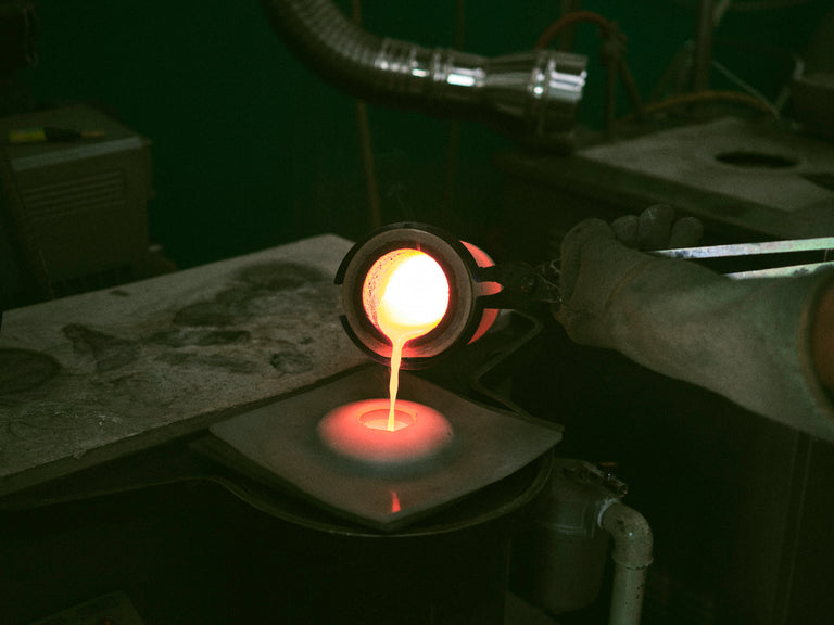 It all begins with silver, melted and poured into a mold, the moment when the piece takes shape. After casting, each jewel is separated, refined, and polished by hand. Through successive polishing, the material gradually reveals its texture, its reflections, its light. The gestures are precise, repeated for generations, giving each ring and bracelet its unique character.