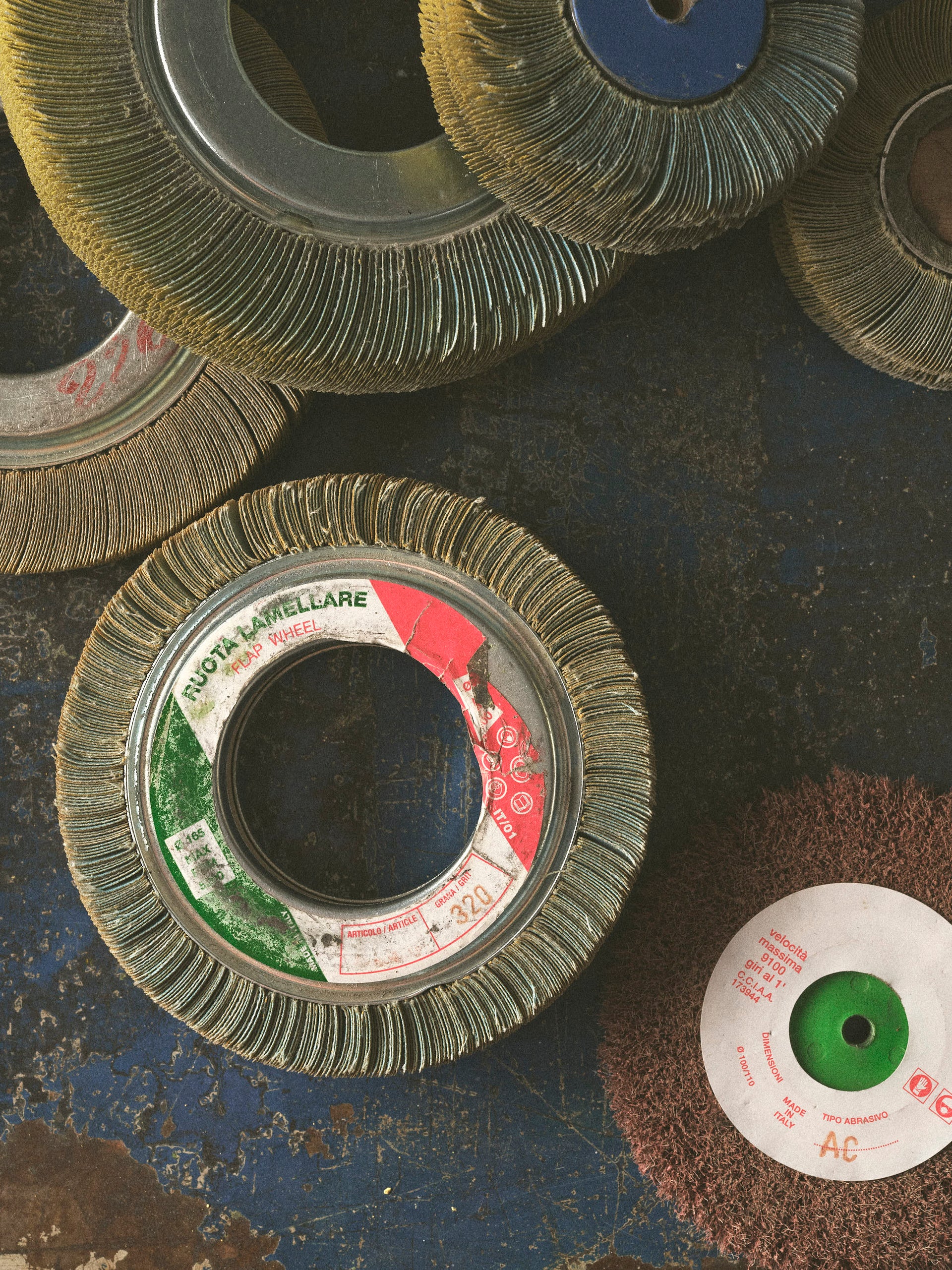 Most of our jewelry is made in Tuscany, near Arezzo. In this family-run workshop, 925 silver and brass are shaped by hand. The atmosphere is distinctive: the steady sound of rolling mills, the smell of heated metal, the light reflecting off timeworn workbenches. Nothing here is automated. Each piece passes through the hands of artisans who straighten, solder, and polish. This closeness to the material is what gives each piece its character. Our scarves and shawls are also handmade in Italy, in specialized workshops with meticulous craftsmanship.