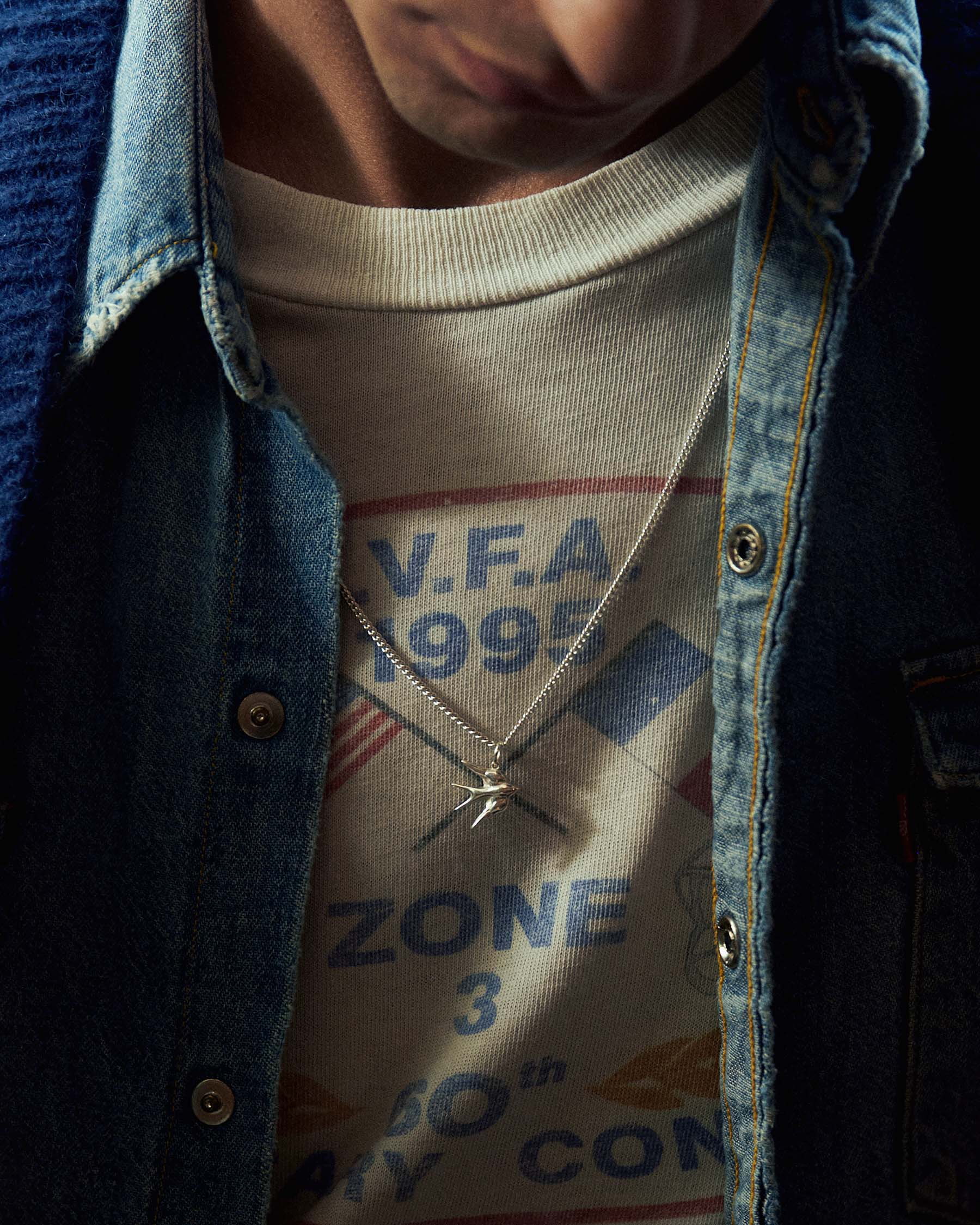 Embossed swallow necklace