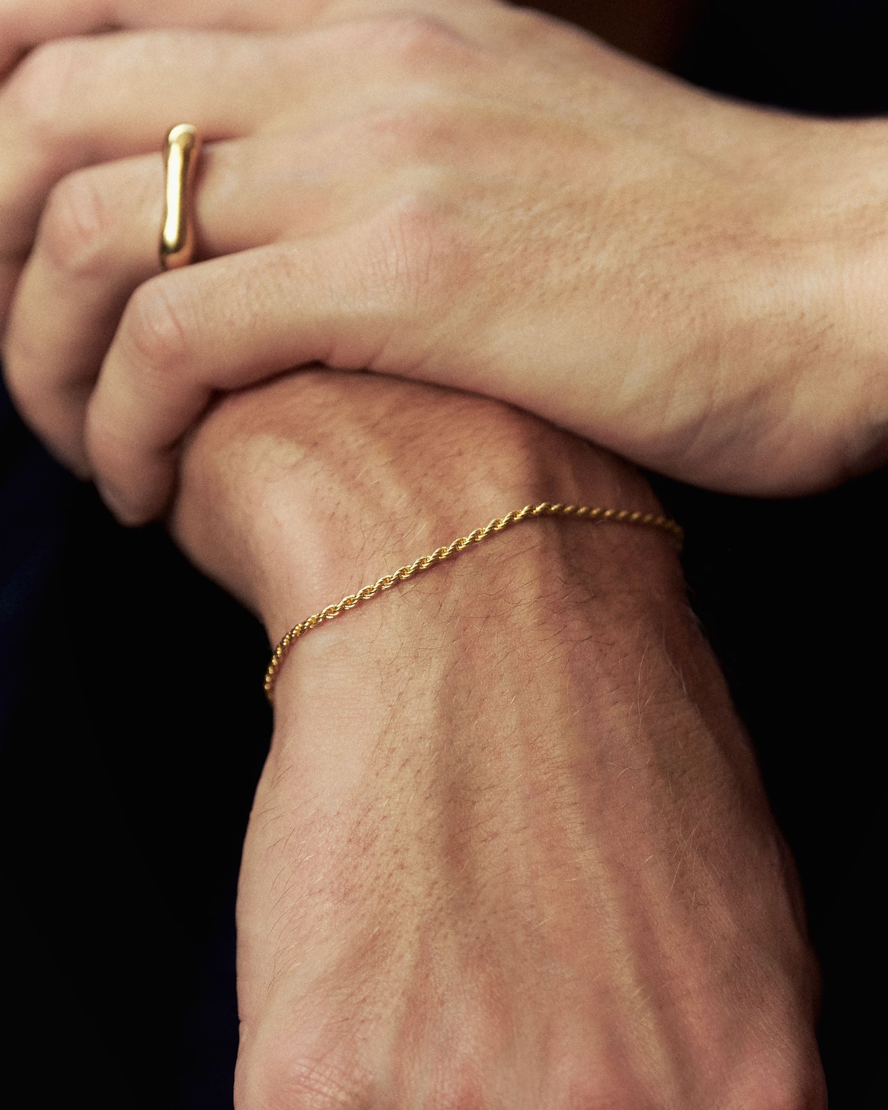 Bracelet crafted with a fine rope chain for a fluid and lightweight profile.